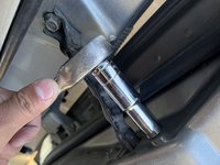 Align the bolts in the holes, then use the 10mm socket wrench to bolt the new door checker securely to the frame.