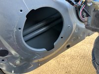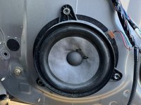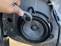 Use a ratchet to remove the screws securing the speaker to the door frame and carefully disconnect the speaker and set it aside.