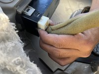 Use a trim removal tool to pry off the trim piece on the armrest.