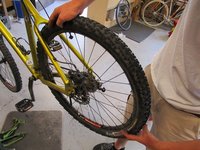 Push down on the the tire with your hands to remove it from the frame of the bike.