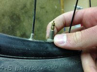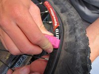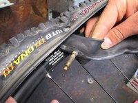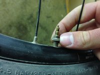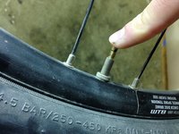 Deflate the tire by pressing down the air valve tip with your finger. Use as much pressure as needed to hear the air flowing out of the tube.