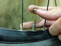 Use you thumb and index finger to unscrew the valve nut by rotating it counterclockwise.
