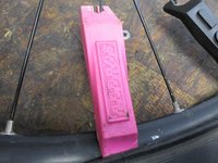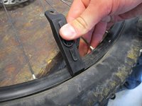 With the tip of the lever inserted between the rim and the tire, rotate the lever 90° counterclockwise and fix the lever to the metal spokes using the arrow shaped slot located on the top of the lever.