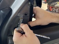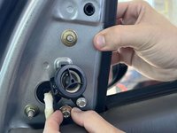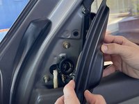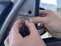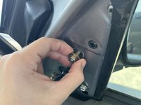 Once all the bolts are off, approach the other plastic mirror covering from the outside door.