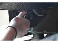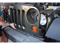 Firmly pull the bottom of the grill until the grill disconnects from the jeep.