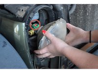 Locate red tab on the headlight plug connector, and push it away from the headlight.