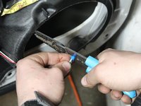 • Splice the wires from the door to the new speaker's wires making sure to connect the correct wire polarity. (The small connector wire from the speaker is positive.)