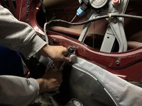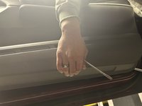 Use a prying tool to remove the two black plugs on the left-hand side and right-hand side of the plastic liner.