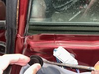 Use the wrench to unscrew the first bolt located at the top of the door in a counterclockwise motion.