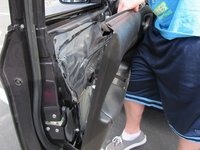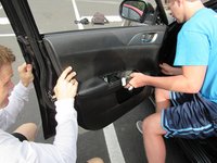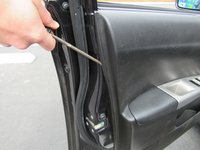 Pry the left side of the door panel away from the door using a flathead screwdriver.