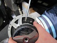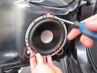 There will be three 8x3/4" Phillips screws (the third screw is indicated by the arrow; you can't see the screw in the picture) keeping the speaker in place. Use a #0 Phillips screwdriver to remove them.