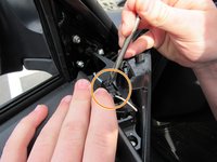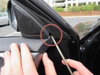 Pry off the entire door speaker and its housing located inside of the mirror.