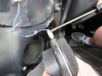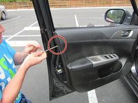 Unscrew the second 8x3/4" Phillips screw located inside the lower door handle on the door's armrest.