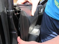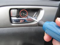 Using your flathead screwdriver, pry the middle plastic door piece away from the armrest.