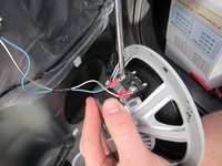 Disconnect the final two power window cables that connect the door panel to the door frame by pulling both out of their sockets.