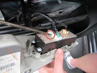 Using pliers, attach a special adapter piece to both wires as shown. Simply insert the wire into the plastic cavity and apply pressure.