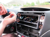 Remove the four 8x3/4" Phillips screws highlighted. Then slowly slide the stereo out from its housing.