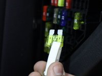 On the back of the fuse box's cover panel, there will be a fuse puller attached. Locate this piece prior to removing any of the vehicle's fuses.