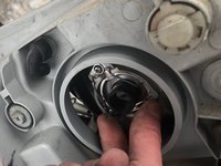 Carefully pull the headlight housing away from the vehicle until you can easily access the rear housing.