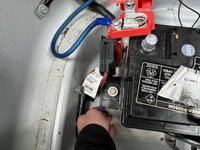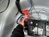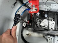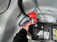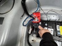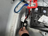 Use a 2 mm adjustable wrench to loosen the 10.1 mm bolt connecting to the positive (red) battery terminal.
