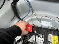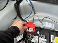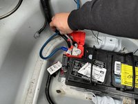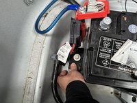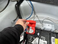 Pinch your fingers on the red cap covering the positive terminal and open the cap.