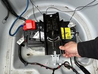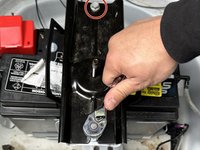 Remove the 13.2 mm bolt that is located on the left side of the battery.