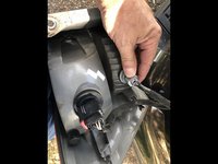 The lamp is now off the vehicle but the wiring is still connected.