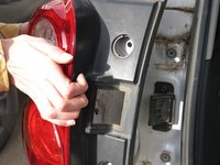 Hold the latch down firmly and pull the tail light cover off the vehicle.