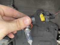 Turn the lightbulb holder counter clockwise until it is released from the headlight