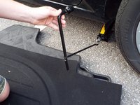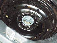 Turning counterclockwise, unscrew and remove plastic place holder in center of spare tire.
