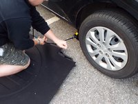 The bottom, hard plastic mat serves as a surface to lay on, if need, whilst changing tire.