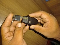 Remove the key from the keyring by pulling the button on the back of the keyring from right to left while pulling the loop at the top.