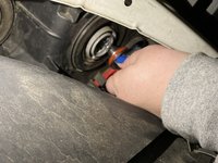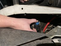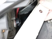 Reach inside the headlight assembly to find the base of the bulb. Push in the release tab (which is the indention found on the base below the blue tag), then move the power plug downward from the old bulb with above-moderate force.