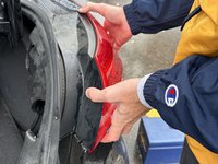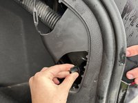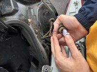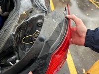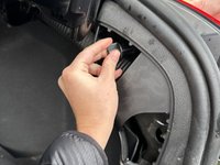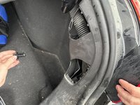 Find the black panel located behind the brake light in the trunk and remove the panel by sliding it off with a small amount of force with your hands.