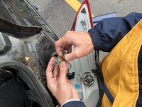 Working with light bulbs instills a small risk of injury. Make sure that your car is off, the parking brake is engaged, and nothing is pressing on the brake to avoid injury.