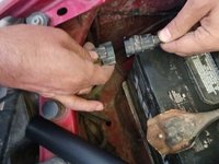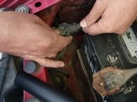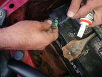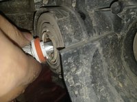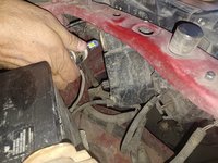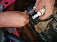 To find the right high-beam bulb, look between the inside of the right headlight and the car's battery.