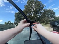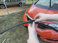 Install new wiper blades by squeezing the middle part until the latch opens.