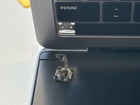 When completely removed, the Touch Bar connector body passthrough is clearly visible from the top and bottom.