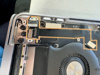 In order to access the Touch Bar you will first need to remove the motherboard, and I advise also removing the Touch ID sensor to protect it from any damage when removing the glued Touch Bar. You might want to remove the screen to protect it, especially because you will anyway need to loosen a few of the hinge screws blocking access to the Touch Bar board. However, I chose not to remove the screen because I didn't have small enough Torx screw drivers for some of the antenna screws. There was however still one single screw(holding the Touch Bar board at the very end of the guide) smaller than the T3/4/5 that I had available, but I managed to remove this screw with a simple knife tip.