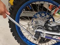Use a 30mm socket and breaker bar to loosen the rear axle nut.