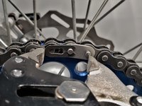 In steps 5 and 12 of the guide, you will be required to use an angle grinder to cut rivets off of a chain. Using a grinder can be very dangerous if you have minimal experience so it is important to exercise caution when using this tool. When grinding clear your working area of anything that is flammable to prevent a fire from starting. Lastly, before beginning, ensure the dirtbike is turned off as you can suffer traumatic injuries to your hands if they are caught in the sprockets.
