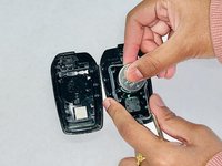 Insert the tip of the key or a spudger into the space where the key was and begin to pry the two parts of the fob apart.