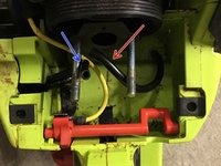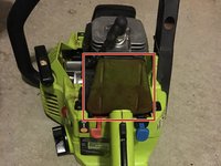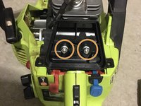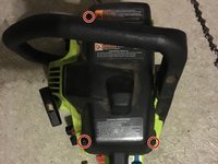 Remove top cover screws (3) using a #6 flat head screw driver on the chainsaw T-wrench.
