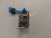Remove the screw holding the fuel pump cover in place using the chainsaw T-wrench.