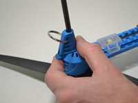 On the leg that the motor is attached to, remove the 8mm screw that holds the long leg foot in place using the 1.5 mm Hex screwdriver/key.