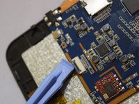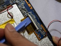 Grip the ribbon located at the far end of the circuit board with a plastic spudger tool.