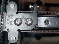 Using 2x M2 washers and 2x M2x8 button head screws mount the X Endstop on the rear late above the upper belt. Make sure the endstop lever is facing down