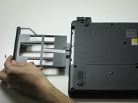Slide out the plastic insert located on the left side, and remove, before returning the laptop to the face-up position.