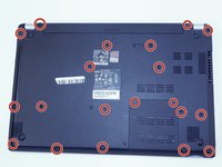 Remove all twenty 6.7 mm Phillips #0 screws from the bottom side of the laptop.