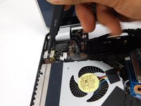 Once the top panel is removed, lift the tape that holds the power cable for the fan.